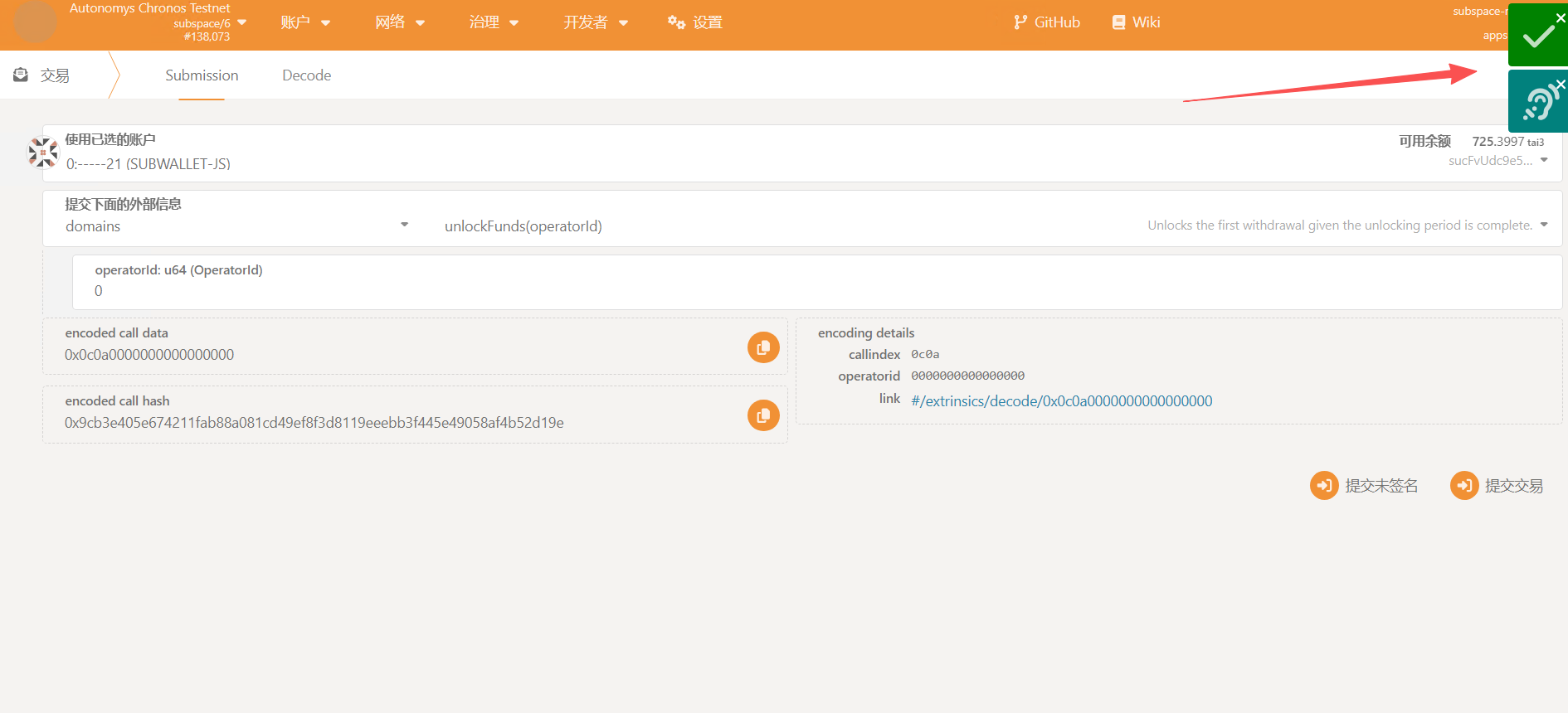 Withdrawal in consensus block 112,515 which derive Chronos Auto EVM block 31,434.